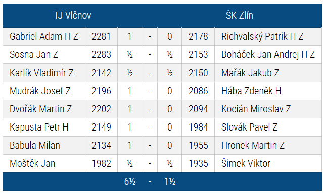 TJ Vlčnov - ŠK Zlín 6.5:1.5 (30.11.2025)